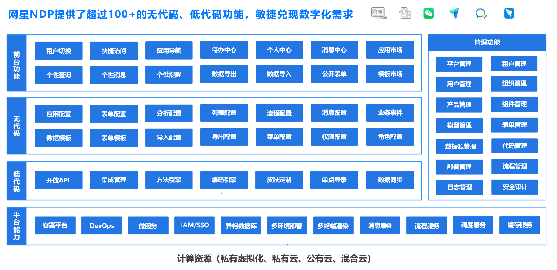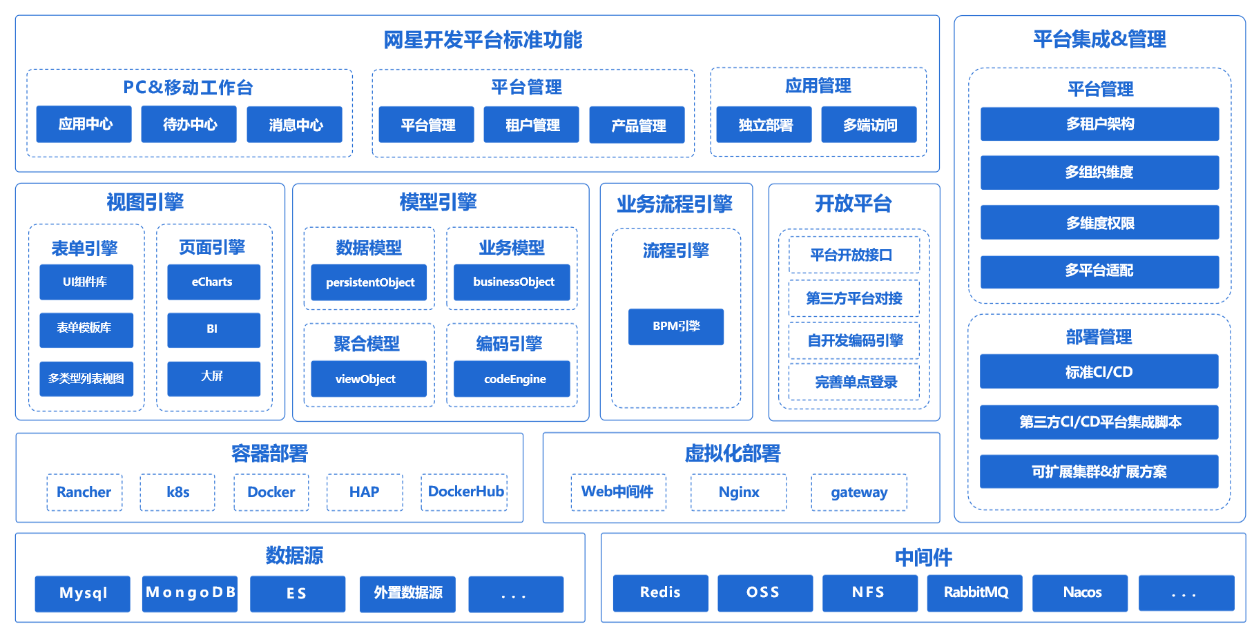數(shù)智化意識(shí)的提升促使IT需求的爆發(fā),低代碼開發(fā)平臺(tái)為重塑IT生產(chǎn)力而生,網(wǎng)星軟件自主研發(fā)的低代碼開發(fā)平臺(tái)通過可視化方式、無需或少量編寫代碼,即可快速搭建各種應(yīng)用系統(tǒng)的開發(fā)平臺(tái),可以有效支撐應(yīng)用交付-設(shè)計(jì)、構(gòu)建、部署、運(yùn)維操作、監(jiān)控和迭代。
